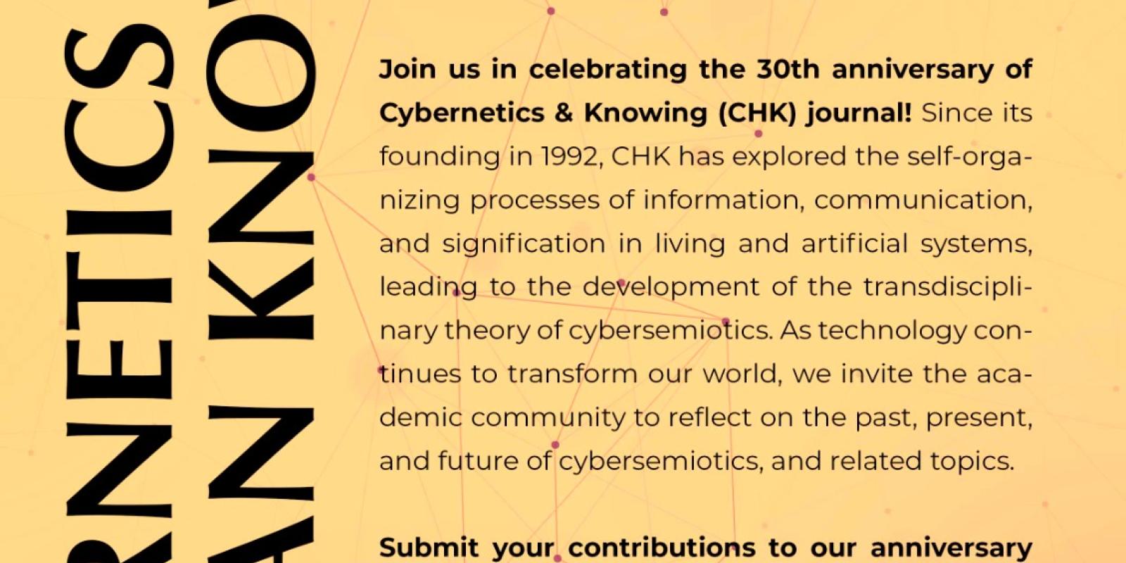 Join us in celebrating the 30th anniversary of Cybernetic and Human Knowing Journal (CHK) and honoring its founder, Søren Brier, by submitting your contributions to our anniversary issue!