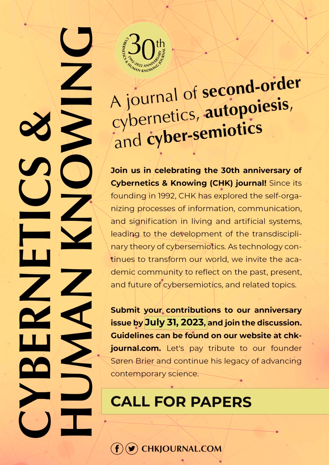 Join us in celebrating the 30th anniversary of Cybernetic and Human Knowing Journal (CHK) and
