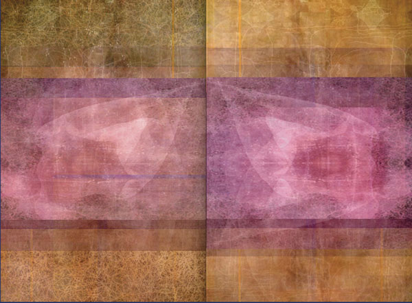 The paintings in Odyssey pandemOnium, featured throughout this issue, are conceptually situated within Nechvatal’s immersive noise theory. They not only reflect the virtual and the actual (what he calls viractual) but also his understanding of noise theory in an “immersive noise consciousness,” which “distorts and disturbs crisp signals of cultural communications.” Nechvatal adds that “They make use of a complicated turmoil produced from close exchanges within figure/ground relationships that challenge us to think outside of the normal system of human perception.” Classically rendered figures are embedded within a complex and subtle ground in such a manner that the normal figure/ground relationship more or less merges. Painted on suede-like velour canvas, the colors are dusty and muted, underlining the fugitive nature of the floating and migrating imagery. That double intricacy elicits a sense of being misplaced and adrift. The viewer’s eye must navigate the visual pandemonium in a way that suggests Odysseus’s wanderings. Present in the paintings is a partially hidden world of distant places and people, hints of classical sumptuousness and visual order, lost and at ideological drift, searching for scenic alternatives.
