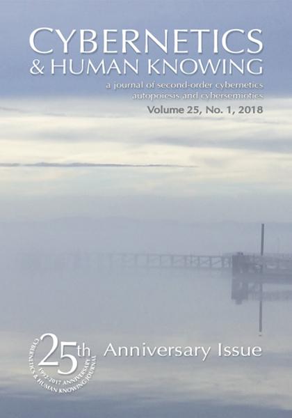 AllVolume 25Issue: 1Year: 2018Table of ContentForeword: 25th Anniversary Issue: High Abstraction and Skillful ApplicationArticles: “Man Is a Bundle of Habits” in a Universe with an Inherent Tendency to Habit FormationObservership, Knowing, and SemiosisThe Innovation of Innovation How the War System Dominated Societal TemporalizationThe Paradox of Stability and Dynamics in Organizational CouplingsASC Pages: Towards a Dynamic Heterarchical Ecology of ConversationsBook Review: Semiotics of Mimicry as Puzzle-Solving in BiosemioticsFeatured Artist: Claudia Jacques