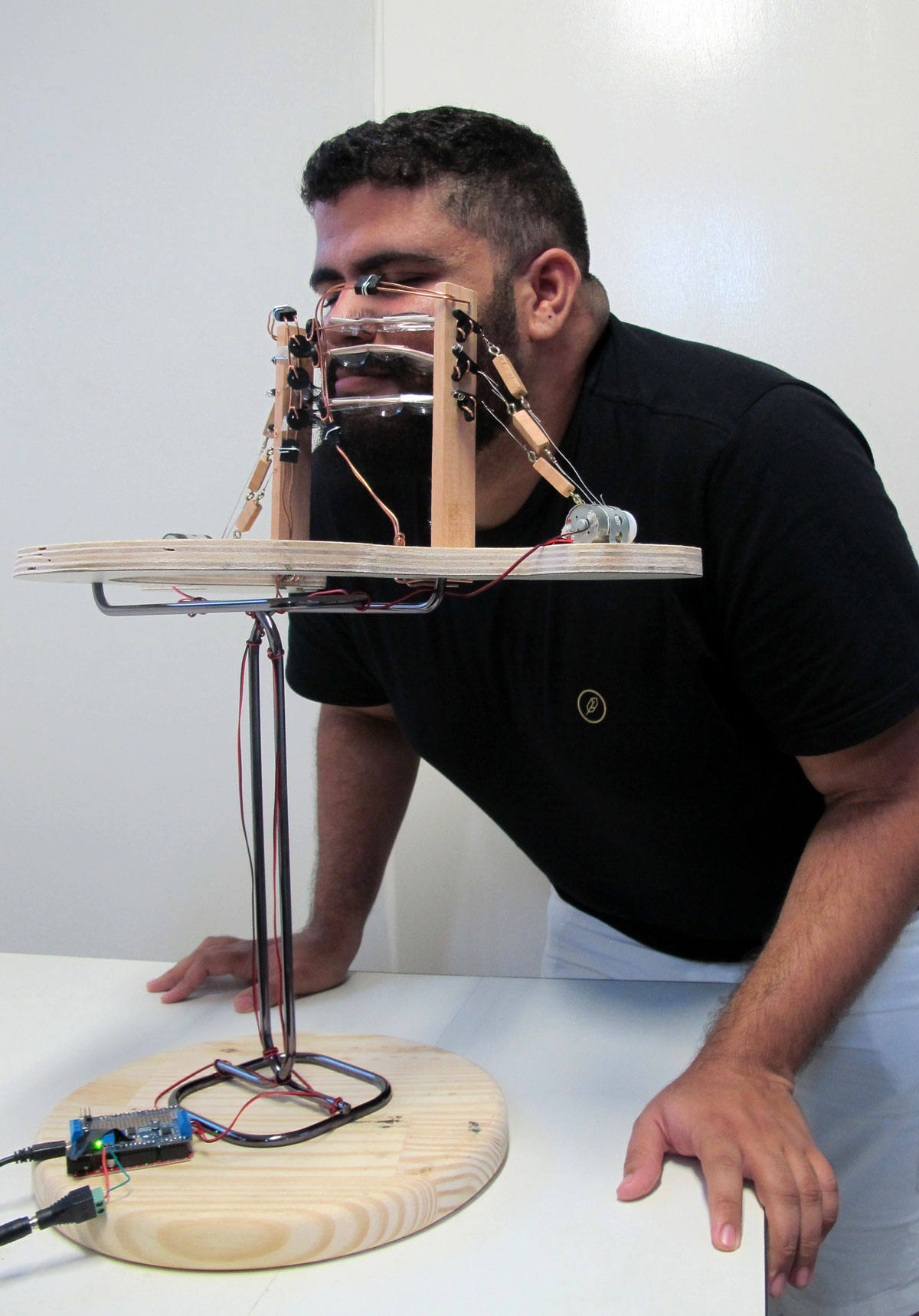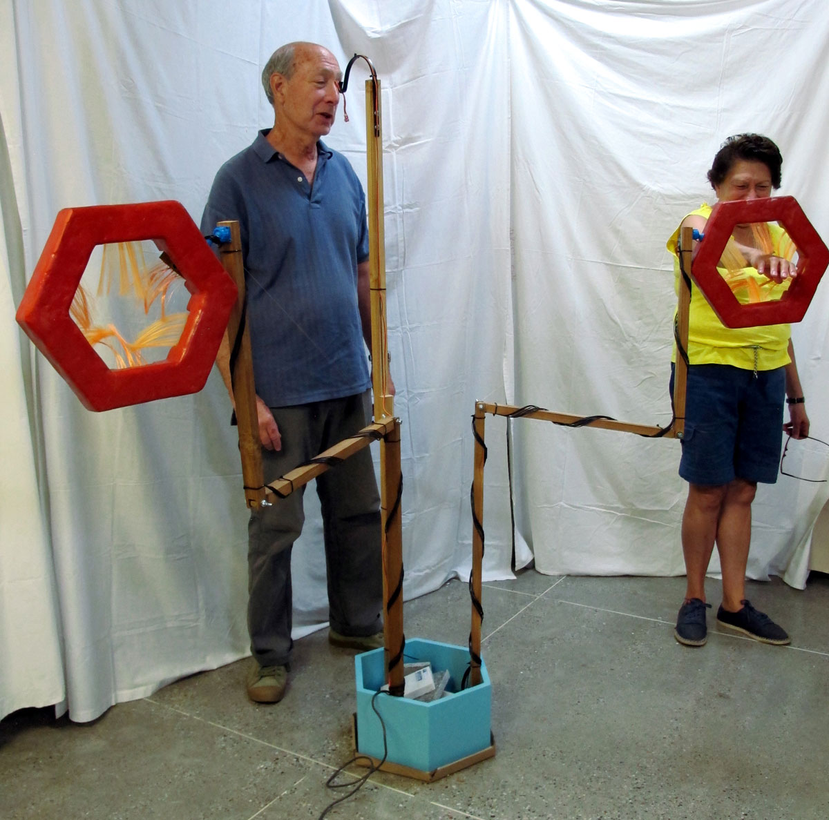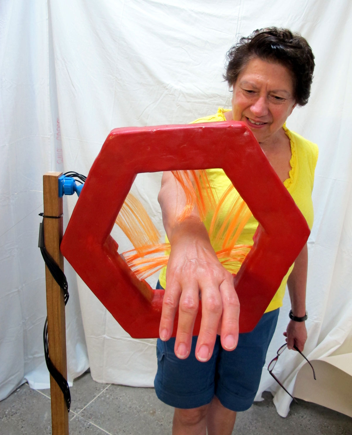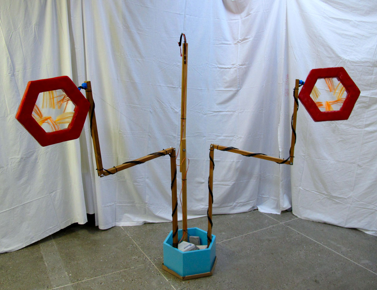 Lessner, MFA and Fulbright Scholar, explores physical computing, materiality, built environments, responsiveness, and interactivity to engage with contemporary discourse communities on the body, agency, and conceptions of self. Influenced by Lygia Clark’s sensorial and relational objects, which ritualize and focus on gestural performances to reframe the processing of memories, inter-personal interactions, and conceptions of self, Lessner’s interactive sculptures call on our embodied knowledge and temporal sensibilities in a new process which builds on the suggestion in Clark’s work that relational objects can be transformative and therapeutic. Sensors and those algorithms which interpret their data allow for a sustained immersion in the embodied experience of intimate communication. The viewer’s participation is actively invoked by this sensory attunement and the attendant association of personal embodied memory. The use of computing as material attempts to open viewers to novel variations in sensory language, prompting them to devise new engagements with its syntax. By provoking new associations, the sculptures arouse the possible mutability of the viewers’ narrative consciousness. A critical aspect of this work is the possibility of expediting an embodied response to stimuli that is usually passively processed. Through amplification and sustained interaction these sculptures experiment with a collaborative process of play and exploration which facilitates ways of knowing that are beyond logic.